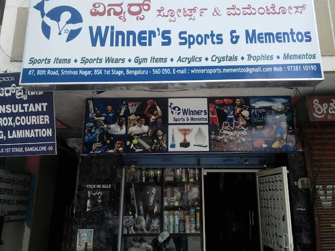 Winner's Sports & Mementos, your premier destination for sporting goods and mementos in Bengaluru! Located at 7, 80 Feet Rd, Srinivasnagar, Banashankari, we offer a wide range of products to cater to athletes and sports enthusiasts alike. Additionally, we specialize in providing custom mementos to commemorate special achievements and events. Visit Winner's Sports & Mementos today and discover everything you need to excel in your favorite sports and create lasting memories.